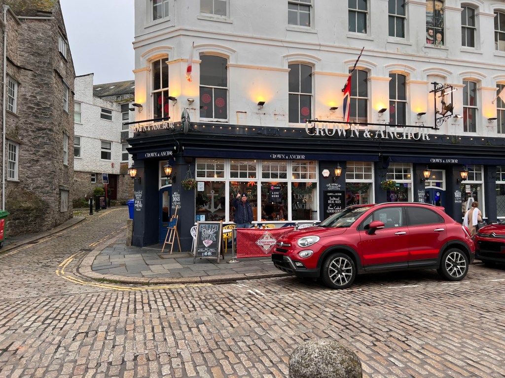 Next up – we visited the Crown and Anchor. While it may not be the prettiest pub, we enjoyed it enough to return for a second visit. Its selection of beers from Salcombe Brewery provided a refreshing change from the malt-forward brews typically found in the region.
